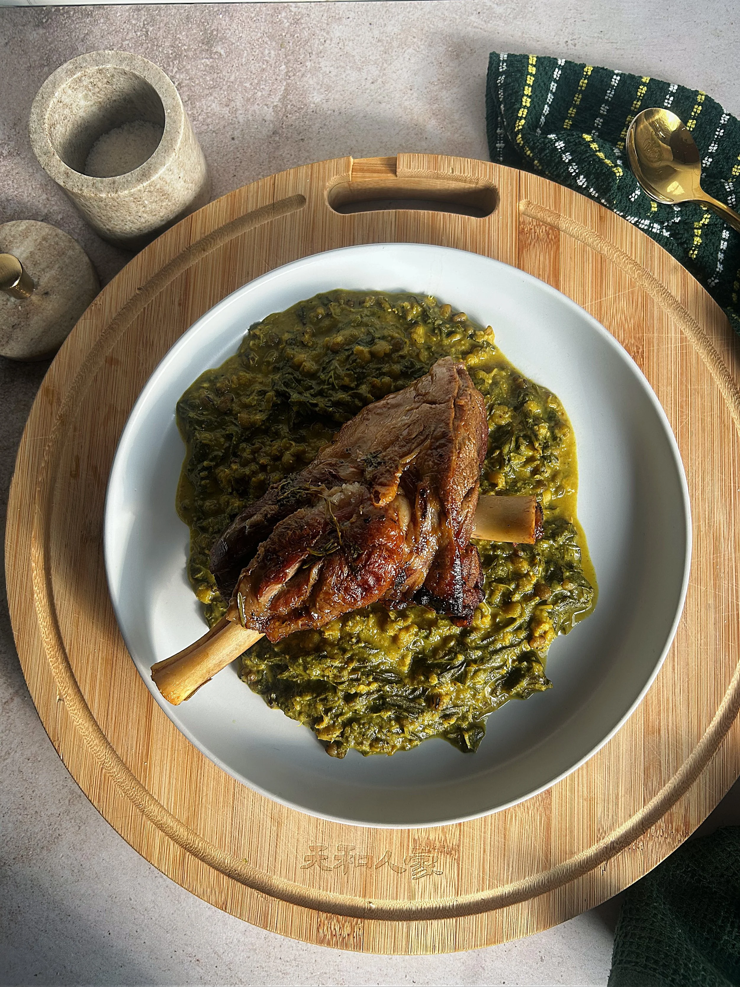 A soft bed of coconut mung beans, butter beans, or even a simple mash works well.