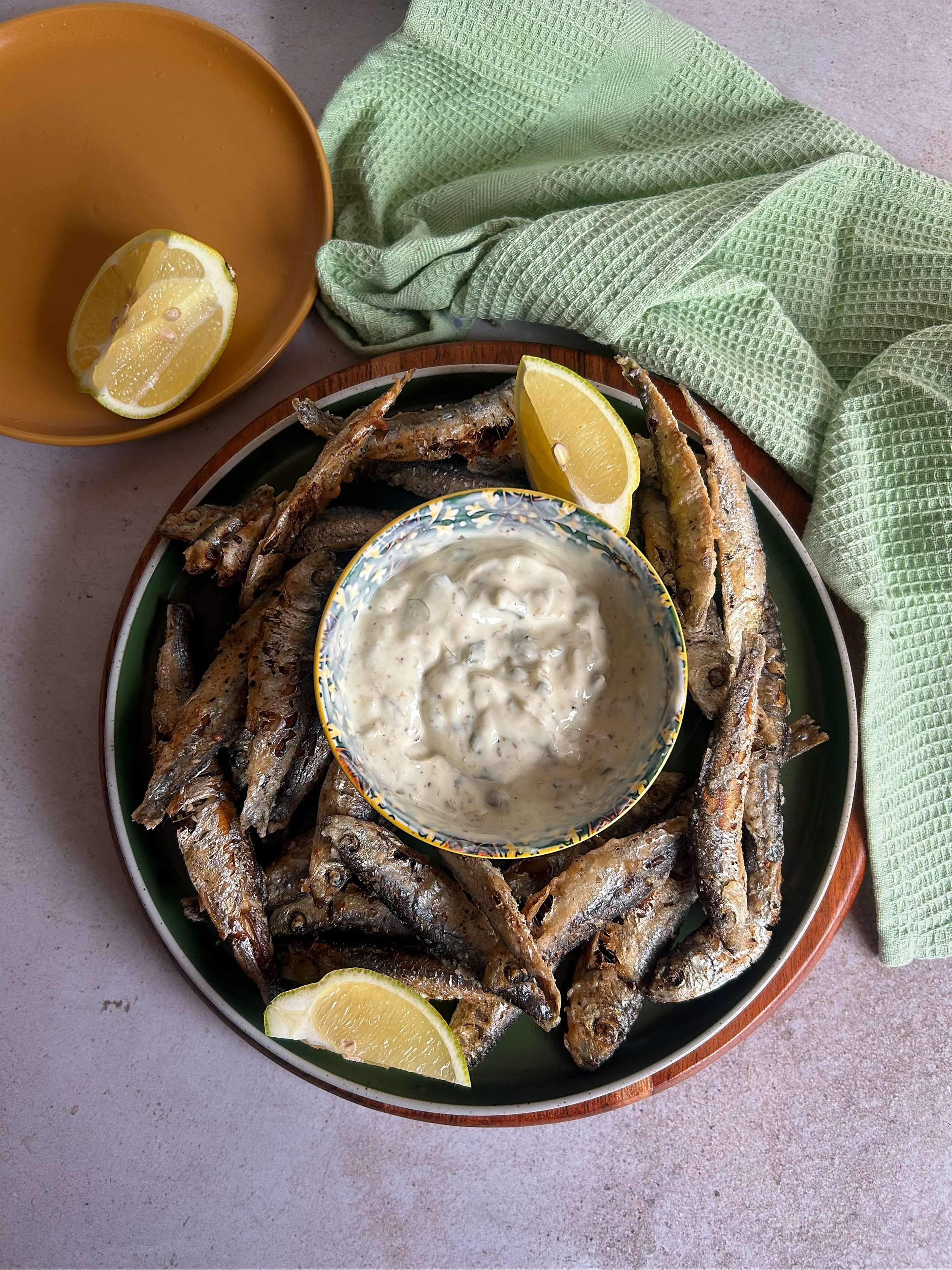 Tiny, delicate fish cooked whole. They are light, crisp, and deeply satisfying in the simplest way. No fuss, no overthinking. Just good ingredients, handled well. This is the kind of dish that embodies the essence of how we like to host - abundant, easy and fuss-free. Think lots of sharing plates.